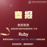 今日,成都棠外国际部学子在雅思考试中再次取得优异的成绩!国际部高二年级Ruby和Jackson同学均取得了雅思总分7.5分的好成绩,两位同学除了口语7.0的高分外,听力更是取得了8.5和...