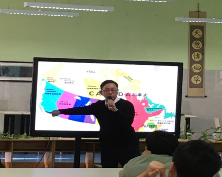Professor Chan首先进行简单的自我介绍,他博学而谦虚,幽默又风趣。他带着美高班学生们一起漫谈加拿大,欣赏异域他国的旖旎风光。关于加拿大的宣传片揭开了此次讲座的序幕,我们屏住呼吸一起惊叹着加拿大的人文风貌,自然风情,不仅感叹大自然的鬼斧神工与人类的杰出创造。