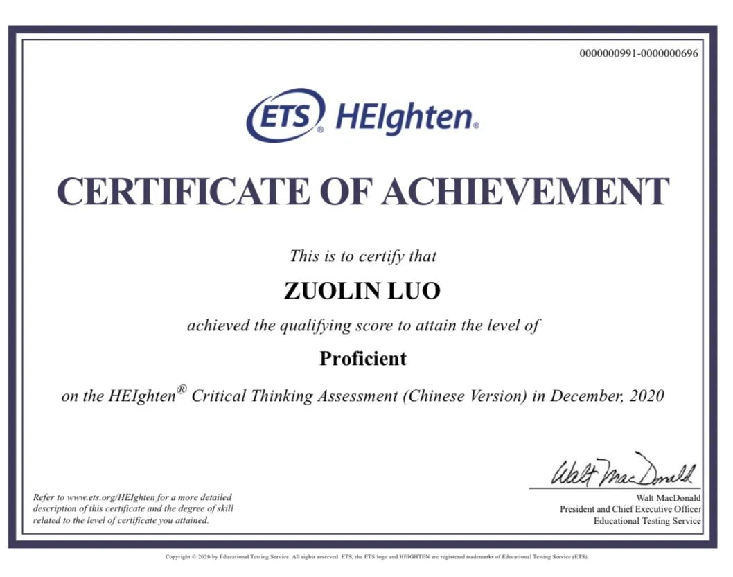 ETS, 成立于1947年,是世界上最大和最权威的非营利教育测试和研究机构之一。据悉,ETS批判性思维挑战赛由ETS 主办(托福和GRE 命题方),最为看重的测评方向之一就是批判性思维,由全球顶级专家设计批判性思维测试,深度体现托福考试批判性思维能力命题思路,这也是各大名校非常看重的基本学术能力。针对全球大中学生的“批判性思维能力”学习成果竞赛成绩普遍被海外大学认可(作为大学申请加分项)。