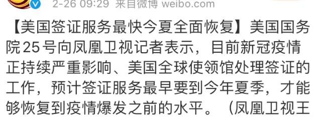 根据美国国务院向凤凰卫视透露的消息,美国驻海外使领馆正在努力尽快安全重启常规签证服务,但是每个地点的情况有所不同。