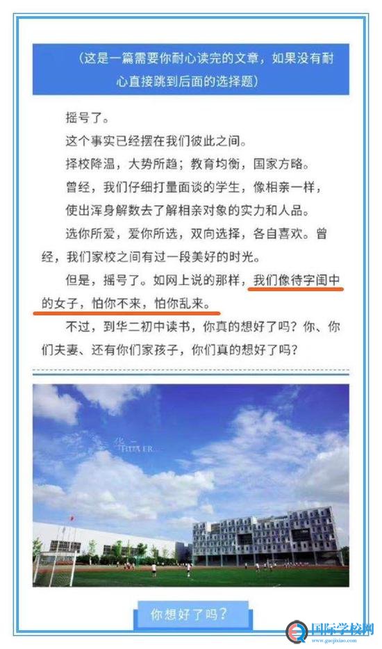 事实上,针对涉事学校的这篇招生文章,网友争议不断。有网友感慨,这样的推文充满铜臭,和“有教无类”的基本教育价值理念是背离的。然而,也有部分家长和网友“力挺”,认为学校不过是说出了实话,只不过实话有些“扎心”而已。