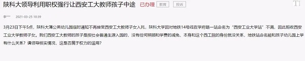 学费的减免,本身和这个西工院(即西安工业大学)的身份就没关系,地铁站命名能和孩子幼儿园上学有什么关系?请领导核实情况,这是否属于权力的滥用?