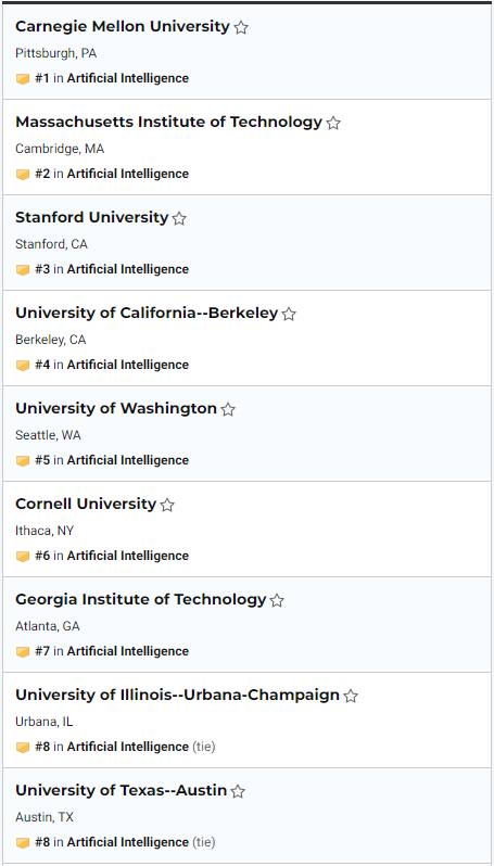 AI岗位缺口将达230万!美国人工智能专业排名!