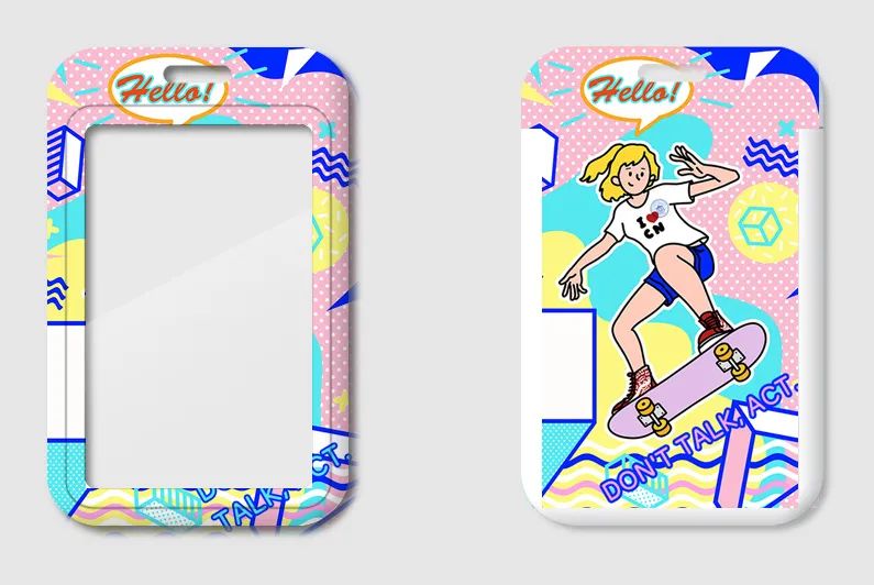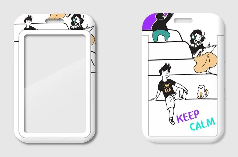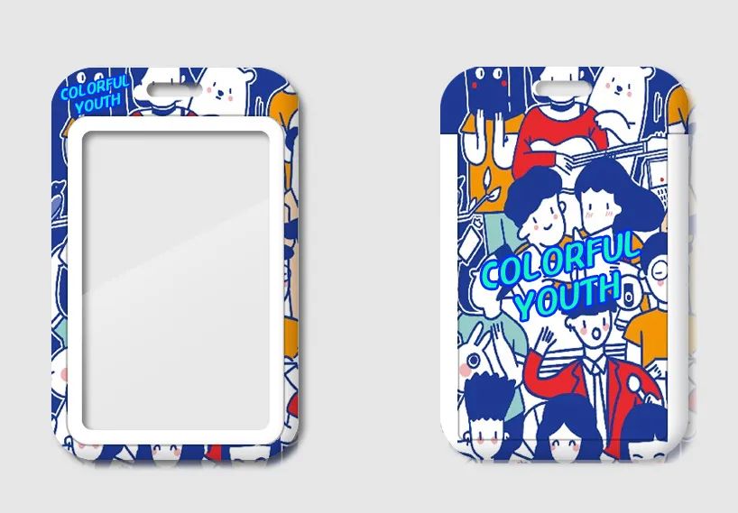 设计说明:图稿颜色为彩色,用扁平插画风格来表达学生活泼,个性,多彩的学习生活,设计形态上更有辨识度,认知效果,这个卡套设计希望枯燥乏味的学习生活,添加一点趣味。