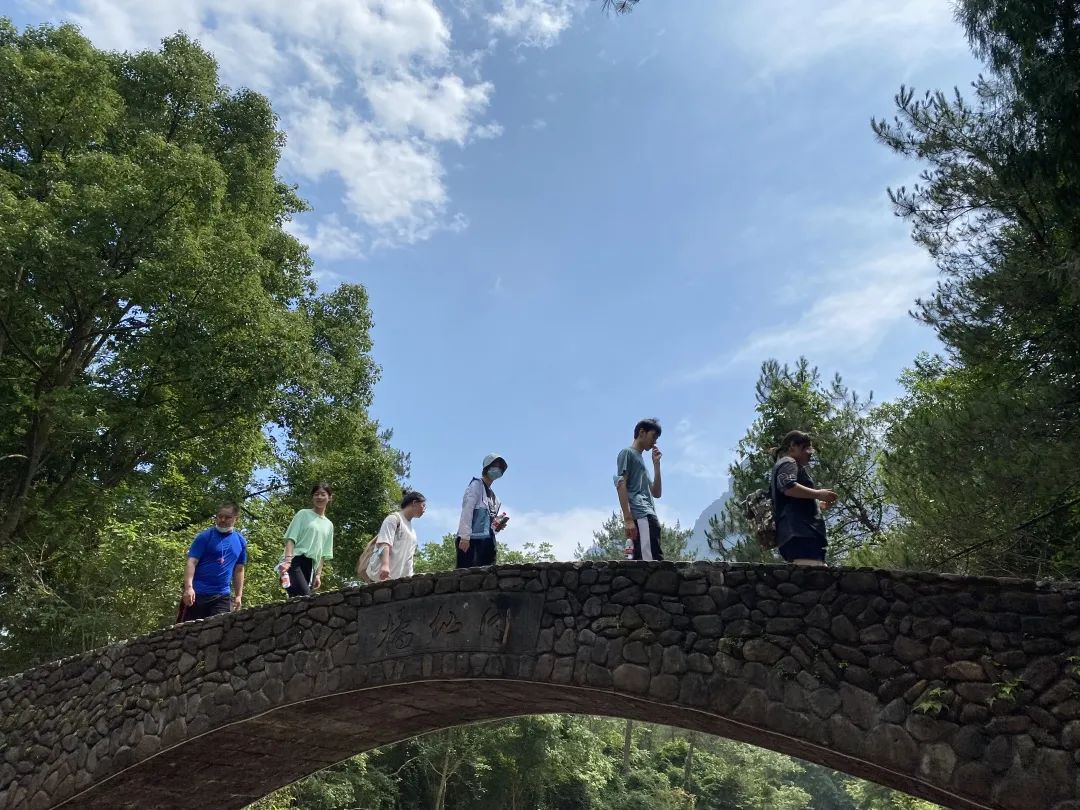云青青兮欲雨,水澹澹兮生烟。在“四万八千丈”的天台山中,一帘瀑布倾斜而下。徜徉在山水之间,同学们也发现了一些不文明的行为。郁郁葱葱的山林间,经常可见散落着的各色垃圾,令人十分心痛。晚上,同学们聚在一起开会,进行总结与反思,分析为什么会存在这种不文明的旅客行为。