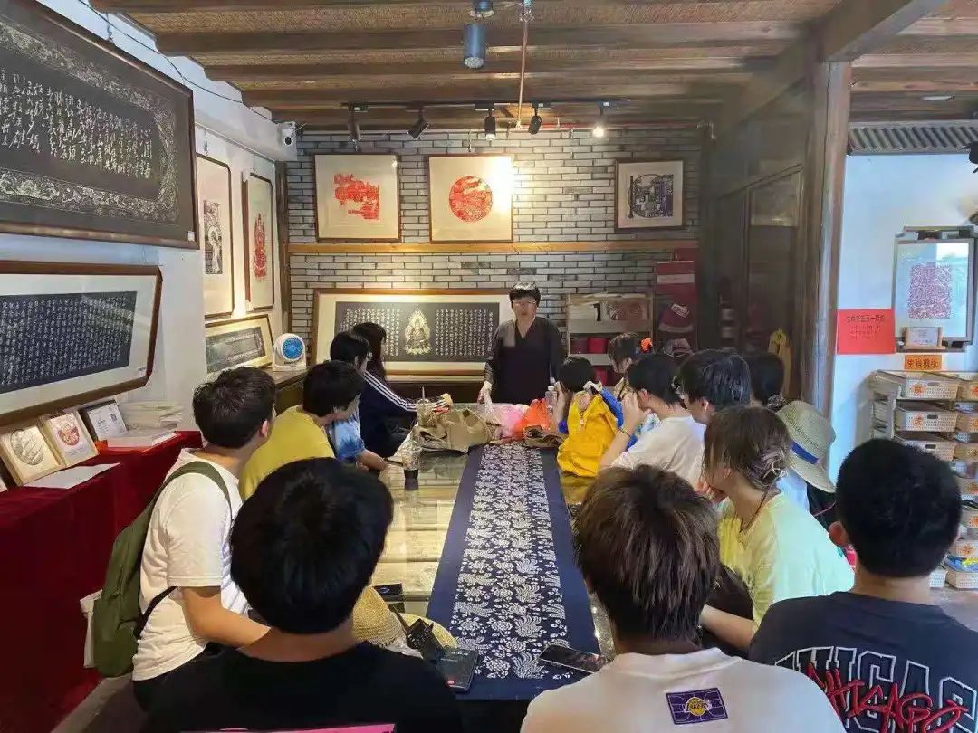 “全长1080米的紫阳老街,是整个临海古城的中轴线。从宋代至今,它的格局几乎未变。各色的小商铺,比如早餐店、理发店、老作坊、五金店等在街道两侧鳞次栉比地排开。”在紫阳老街,同学们在当地剪纸名师的教导下,感受了非物质文化遗产的魅力。