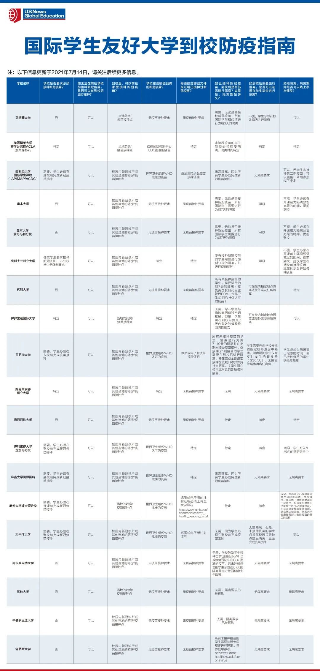 特此,U.S. News Global Education 也收集了美国国际学生友好大学最新的防疫措施,帮助即将赴美的学生及时获取到相关信息。