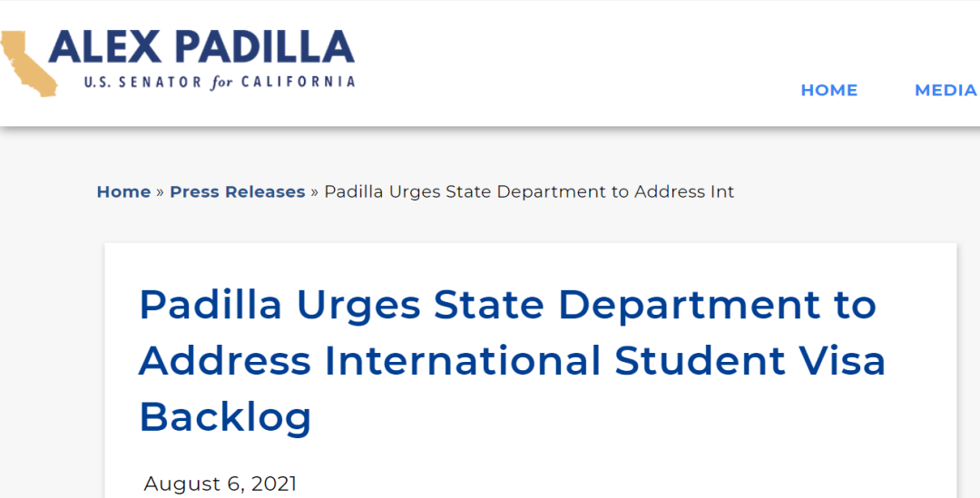 图源Alex Padilla参议员官网这一系列表态和举措对中国赴美留学生来说也是释放利好的一个信号。