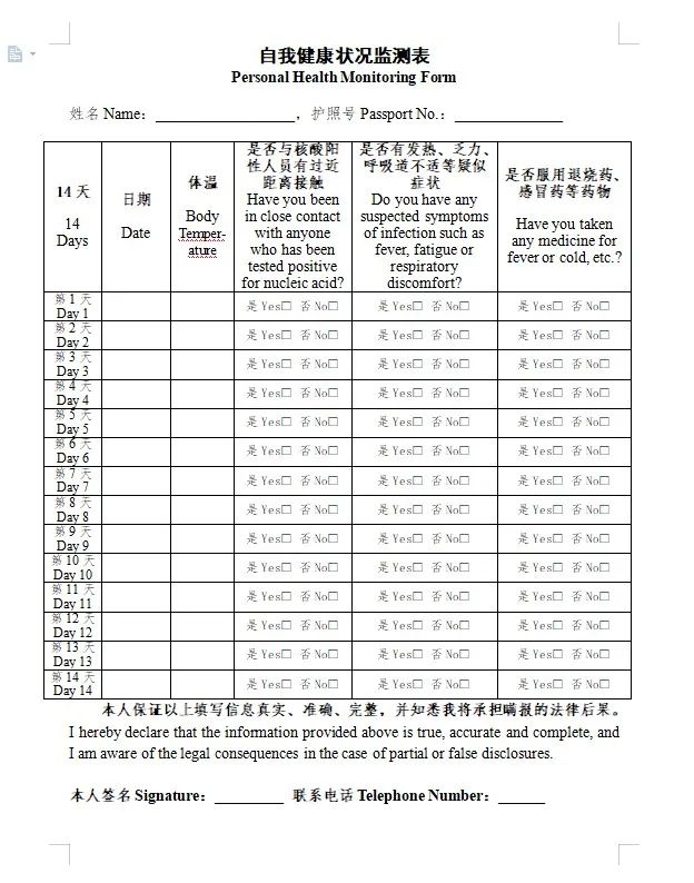《自我健康状况监测表》↓