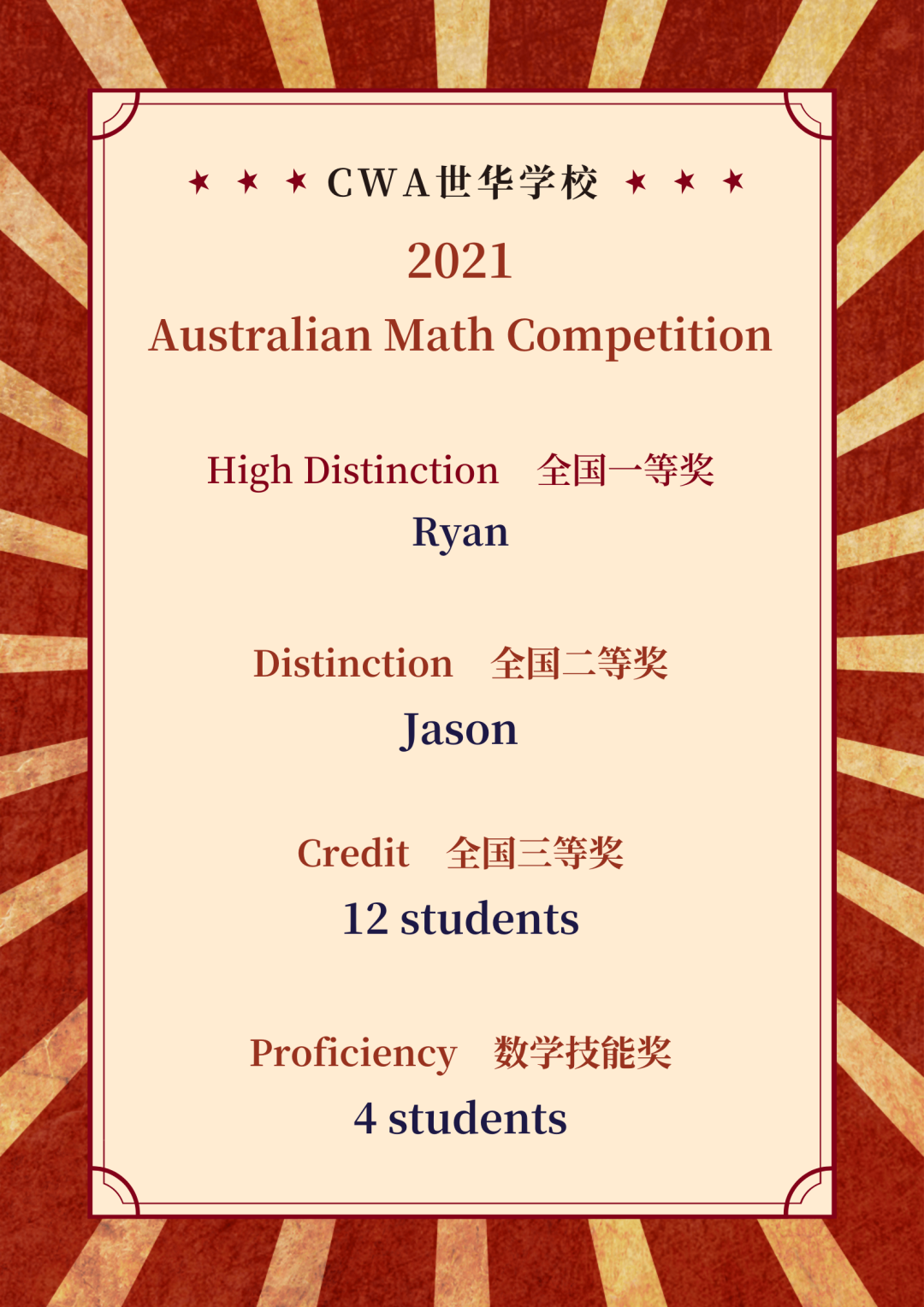 世华喜报 | AMC数学思维挑战赛 世华学子获奖率100% - CWA世华学校