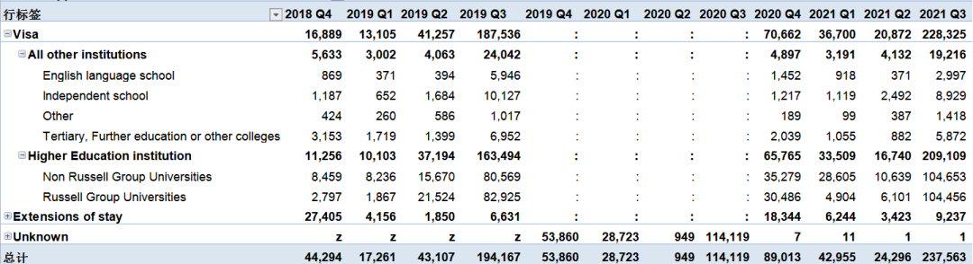 虽然整体签证数据大幅上涨,但不同教育机构从疫情中恢复的速度仍有所区别。