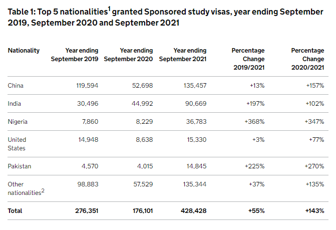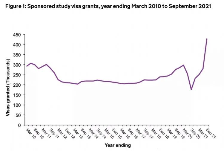 2021英国内政部留学数据首次公开,比疫情前暴涨55%!