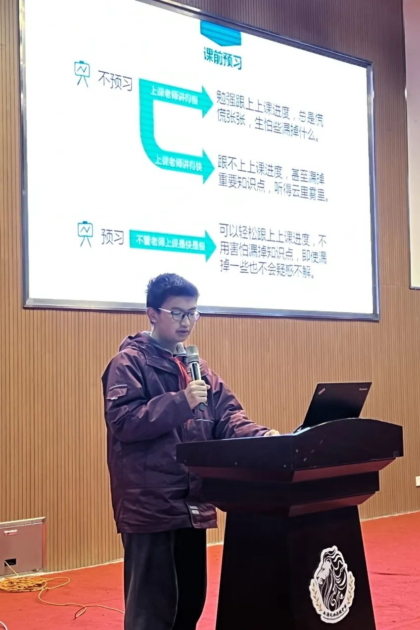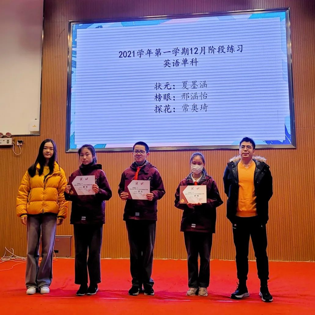 最后,大会对12月阶段练习取得优异成绩的同学进行了表彰,并邀请了3位同学和大家分享了自己的学习方法。初一(2)班的秦子寒分享了语文学习要重视基础背诵默写,增强课外阅读和做好课文注释笔记的经验;初一(3)班的田雨泽分享了他在数学学科方面,从课前预习、课中学习、课后复习三个阶段的学习方法;初一(3)班的夏墨涵告诉大家英语学习中积累的重要性,以及夯实词组搭配方面的经验。同学们静静聆听,认真思考,为即将到来的期末考试做好准备。