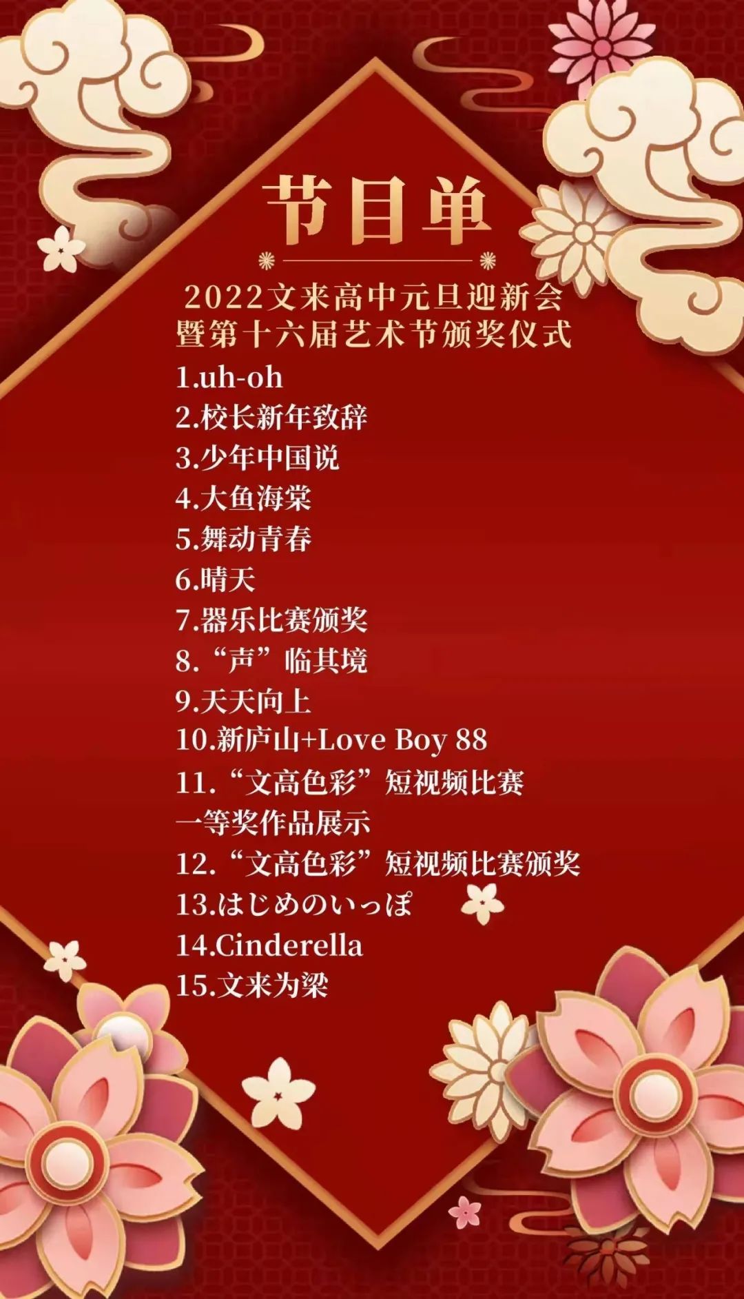 祝福中国的2022!祝福文来高中的2022!祝福每一位老师和同学的2022!祝愿你们健康每一天,快乐每一天,成长每一天!