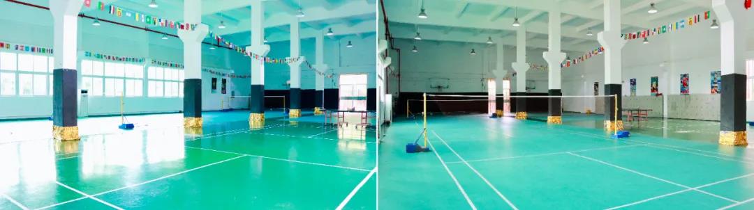 室内体育馆涵盖乒乒球、羽毛球、篮球等等基本运动设施。