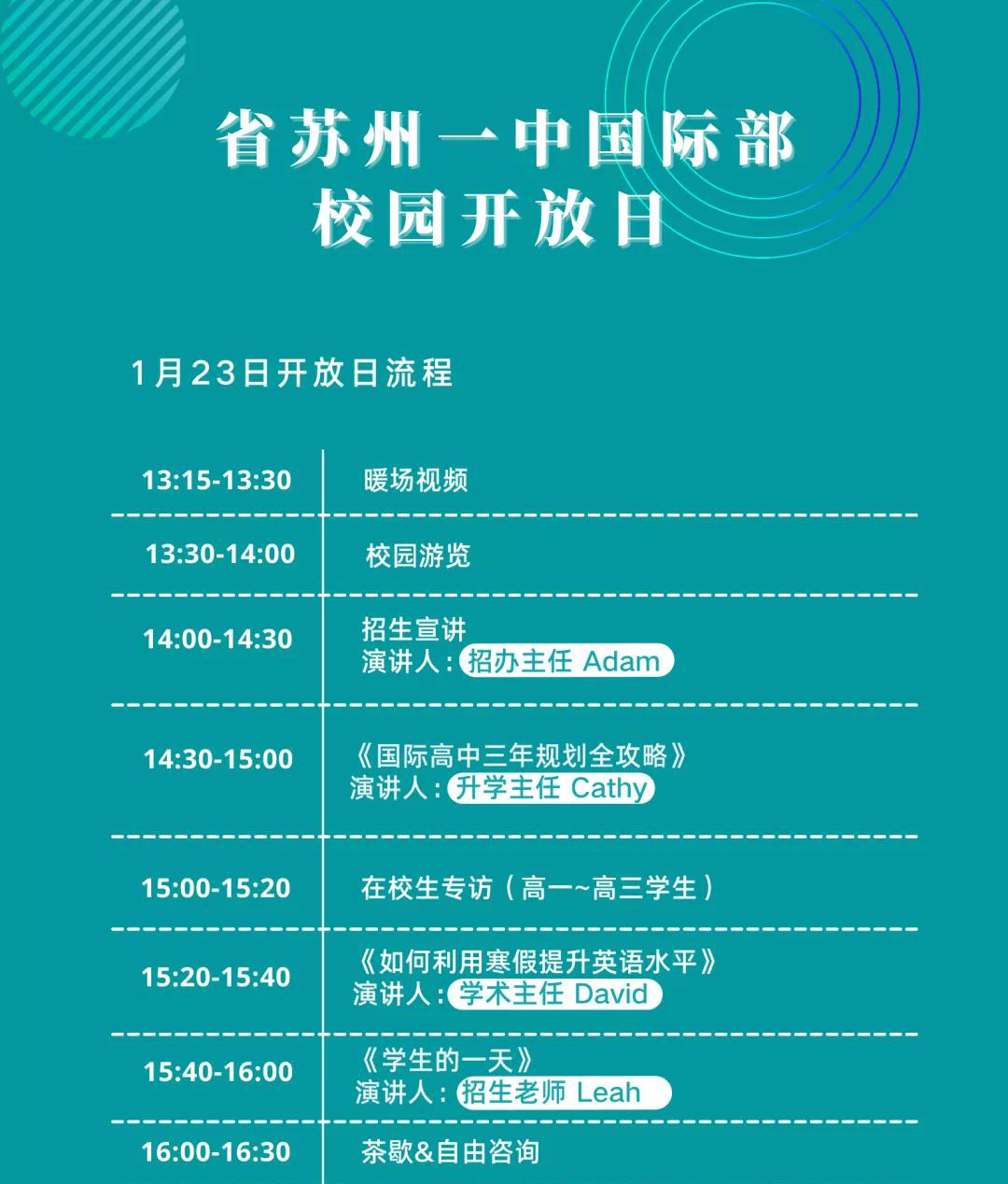 1月23日开放日期间,一中国际部专门邀请了省苏州一中国际部升学主任Cathy和学术主任David,远到高中3年出国规划,近到寒假学习规划,手把手教大家破解“升学规划”的秘密……
