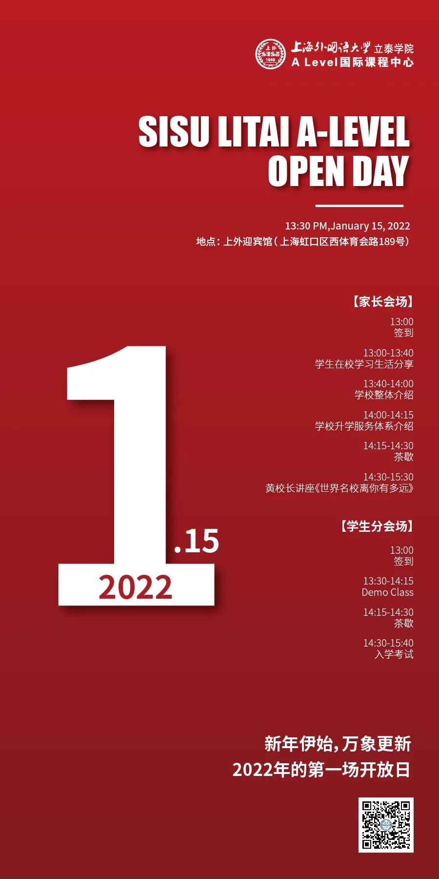 (一) 由于各方面情况的调整与变化,本网所提供的【2022年上外立泰学院ALEVEL国际课程中心剑桥春招最后一场开放日 】仅供参考,并不意味赞同其观点或证实其内容的真实性,相关信息敬请以权威部门公布的信息为准。