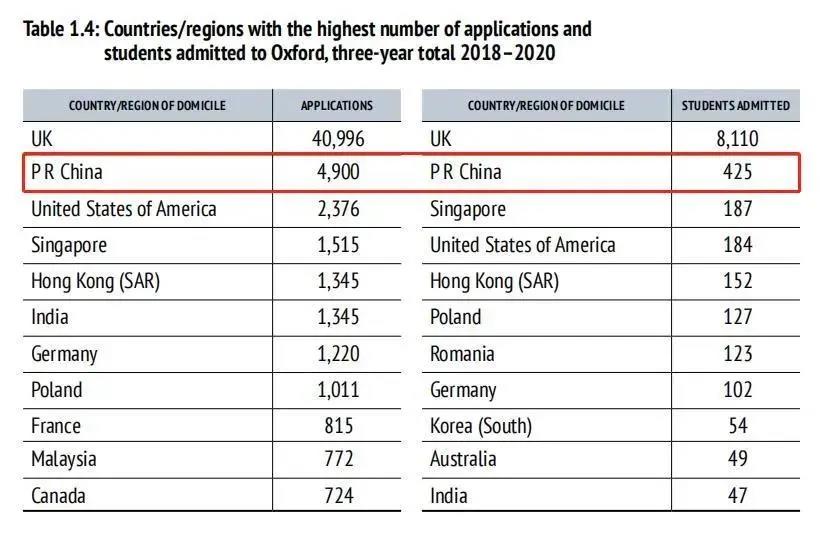 而在2018-2020年申请牛津大学的中国学生一共4900人,其中425人拿到最终的offer。
