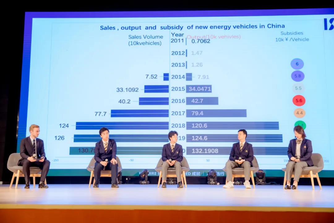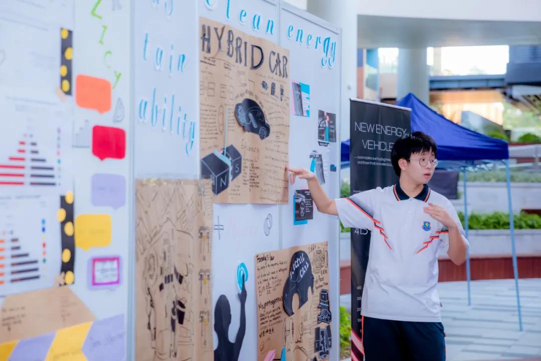 在IB学习中,我们非常注重建立知识间、知识与生活的联系。就像在跨学科活动周中,同学们会走进企业,进行实地调研;会化身政府官员、经济学家、科学家、企业家以及艺术家,从不同学科的角度出发,分别运用数学建模、经济模型、化学工艺,艺术创作等不同研究方法,对同一课题进行多维分析和评估,将理论和实践结合。△跨学科活动可持续发展论坛