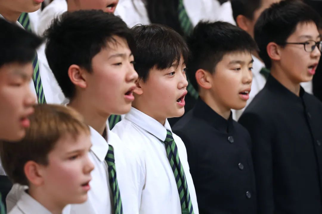 高中松江校区的音乐会则分为秋季演唱会和冬季音乐会两场,百余名学生共同呈现了30多首精彩曲目。同学们用清亮的歌声、纯熟的演绎手法为在校师生上演了一首首动人的曲目。