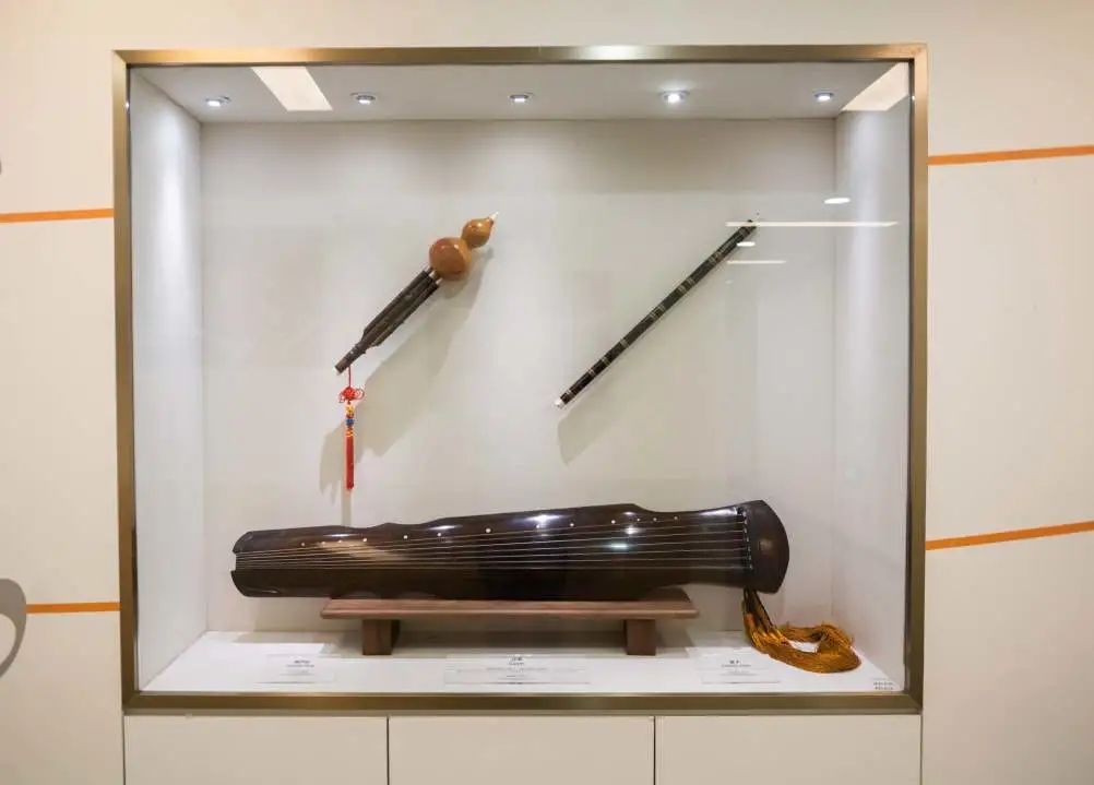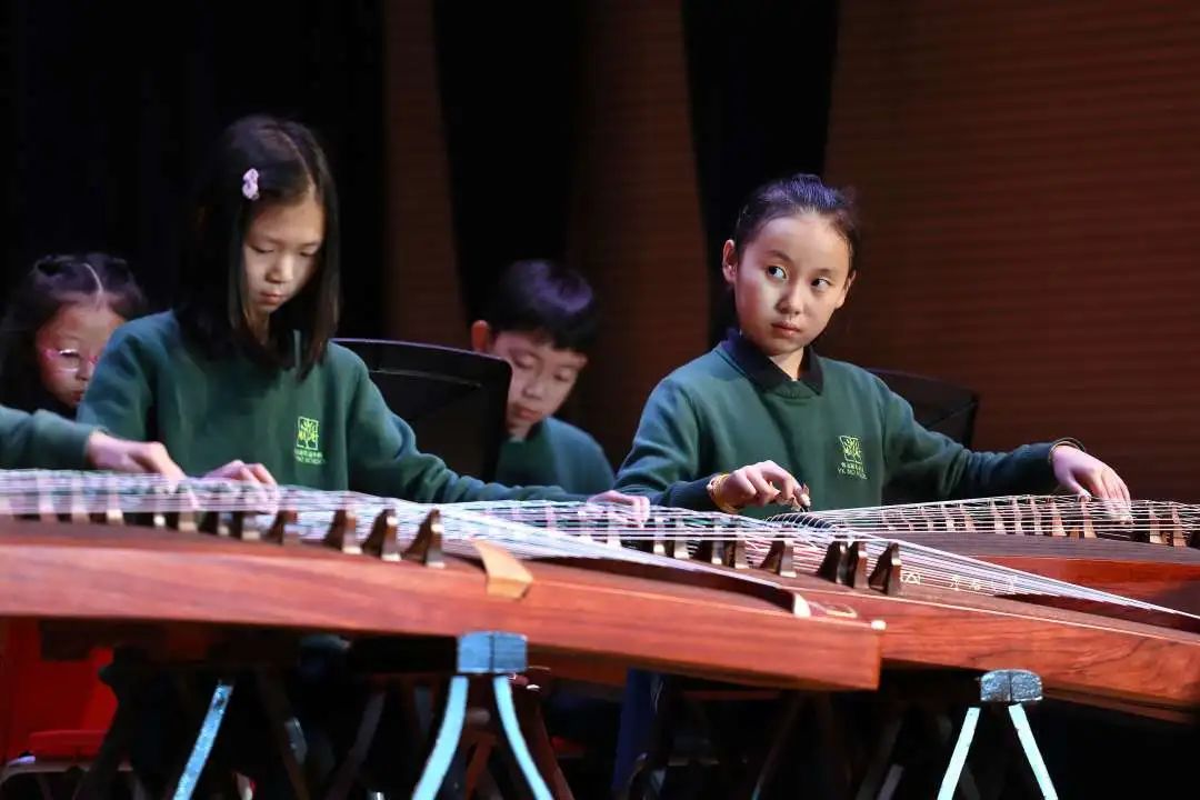 沿着走廊是一排乐器陈列柜,其中既有来自不同世纪的欧洲小提琴,还有三个校区学生们正在学习的各色乐器,充分展现了包校中西结合、多元多彩的音乐教育。