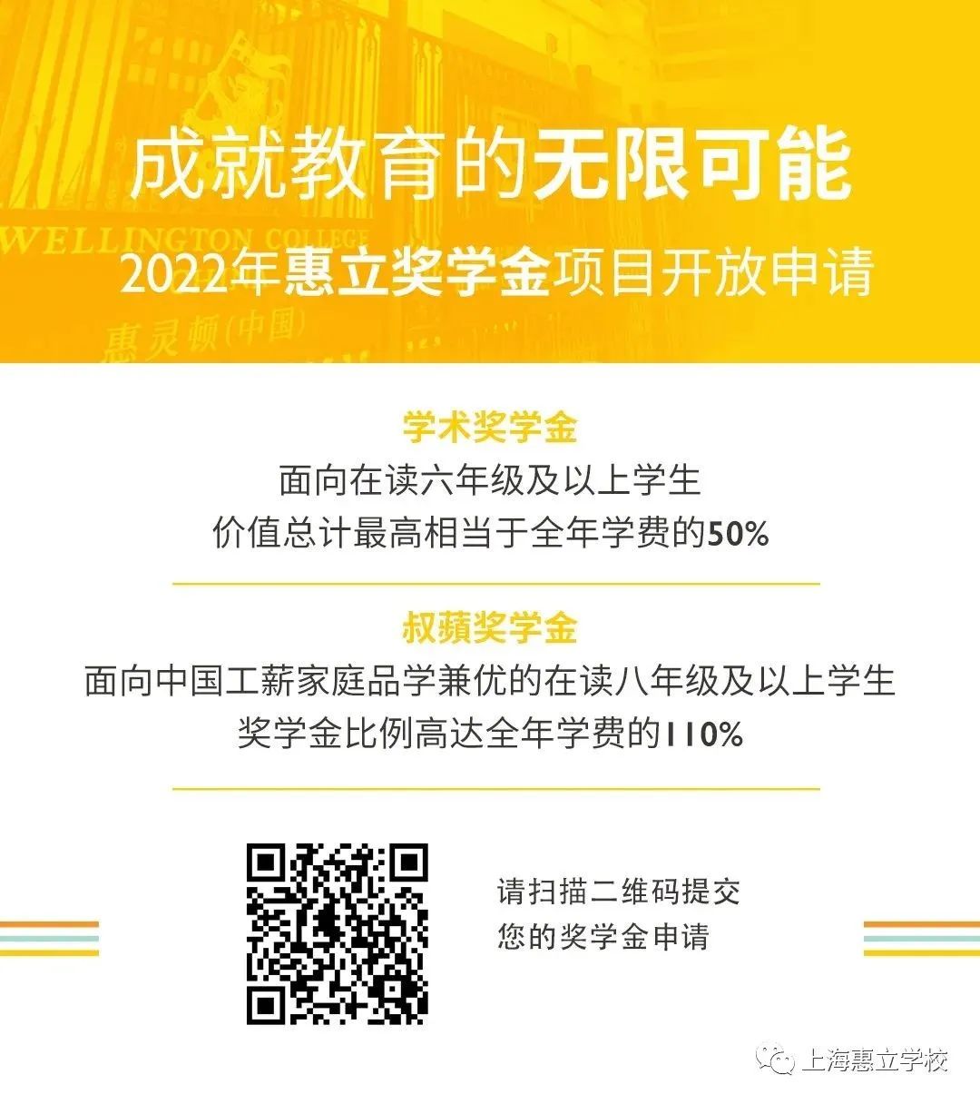 上海惠立学校2022年叔蘋奖学金开放申请