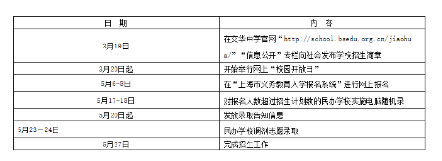 学校招生日程安排(具体以宝山教育局日程安排为准)