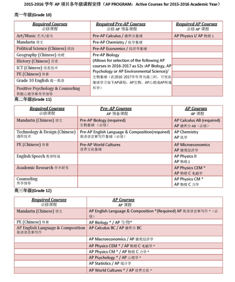 课程设置为三年,学生须完成国家普通高中课程计划所设置课程的同时,学生还完成所选的美国大学先修课程计划,成绩合格、且修业期满者,由人大附中颁发普通高中毕业证书;同时,参加并通过美国大学理事会组织的全球统一考试,获得美国大学先修课程成绩证书。