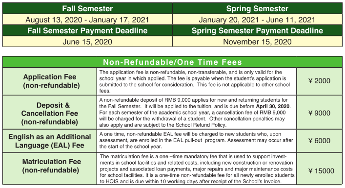 Before applying for enrollment, parents and students who have special learning needs will need to consult with HQIS to be sure the school can accomodate for your child.