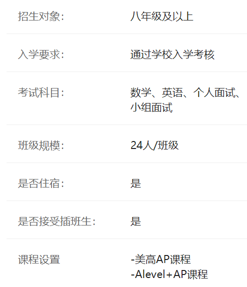 2020招生年级:2020秋季招收8升9年级和9升10年级各一个班,2020春季班(IGCSE 预备班)目前可接受少量插班生(8、9年级在读生)