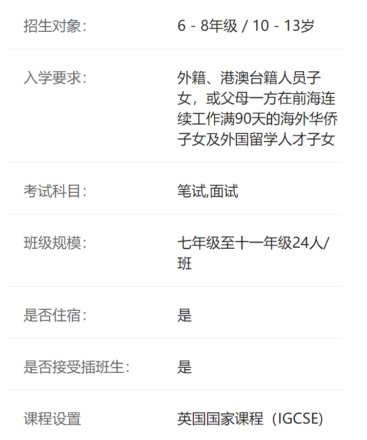 入学要求:持有外国护照或港澳台籍学生,或父母一方在前海连续工作满90天以上的归国留学人才或海外侨胞子女