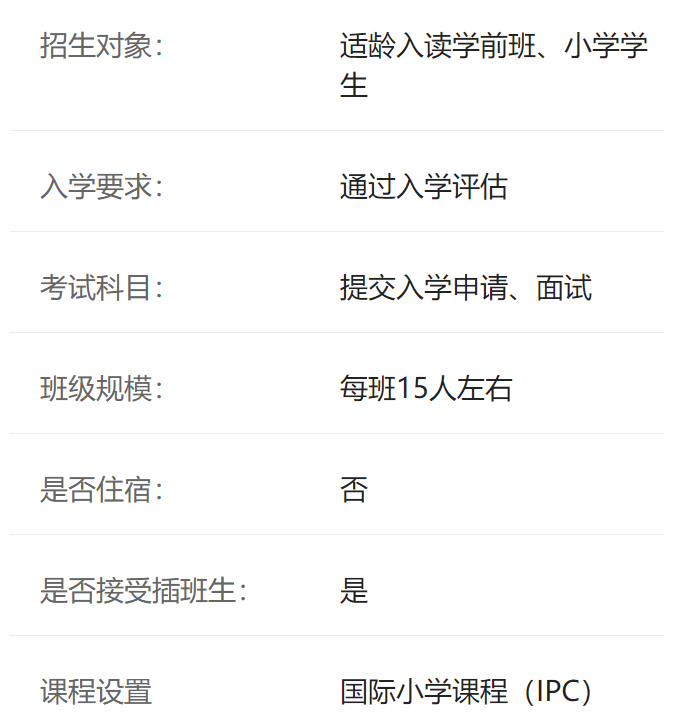 国籍要求:K班学生不限国籍;1-7年级招收外籍及港澳台儿童