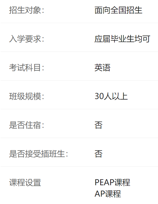 3.幼儿园国际班(EK):仅招生中组Pre-K,报名大班者只能被放入等候名单中。届时如果大班没有学位空缺,将不安排任何考试和面谈。