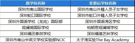 ●深圳蛇口国际学校(SIS外籍)更名为深圳市蛇口外籍人员子女学校;