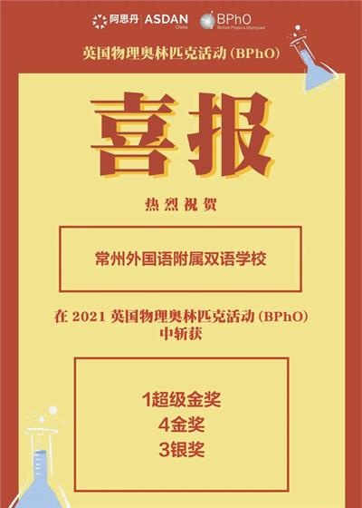 常州外国语附属双语学校学子喜获BPhO英国物理奥赛超级金奖!
