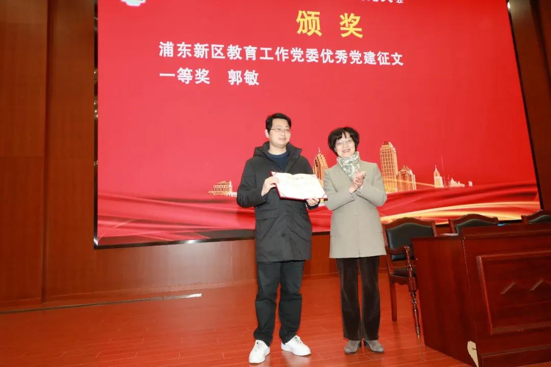 为表彰先进、树立典范,大会对学习表现突出的党员同志进行了表彰。郭敏老师撰写的《把骨干培养成党员、把党员培养成骨干——以进才中学党建工作与队伍建设为例》荣获浦东新区党建论文一等奖第一名;各支部学习强国积分最高的同志荣获学习强国先进个人称号,国际部支部以总积分第一荣获学习强国先进集体称号;李晓群同志在组织工作和防疫工作中任劳任怨,荣获服务之星称号;韩雪同志承担学校和党务宣传工作勤勉尽职,荣获宣传标兵称号。胡瑞峰校长和蒋金珍书记分别为荣誉获得者颁发奖状和证书。