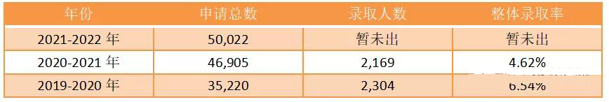 2021-2022年学校的总申请量比去年总申请量46,905多了7%,比2019-2020年总申请35,220猛增了42%。
