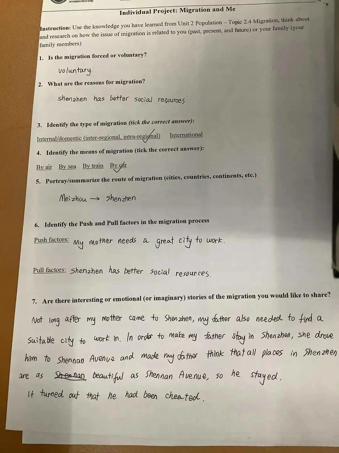 G9的同学们最近在研究题为“Migration and me”的移民相关课题。作为深圳长大的孩子,他们的父母就是鲜活的“移民”案例。他们在老师的指导下,对父母进行访谈,并记录下对于移民问题的看法和感悟。