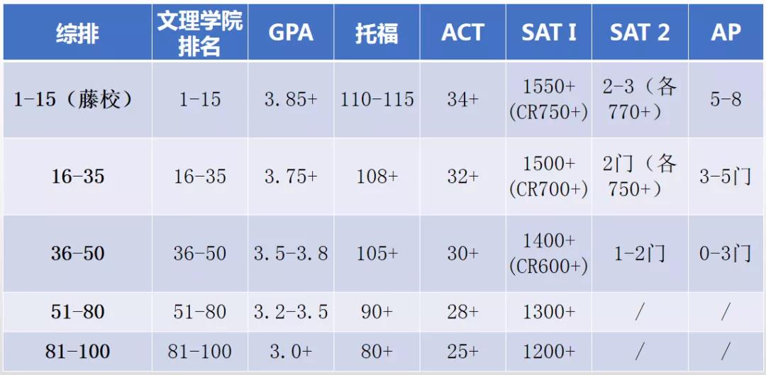 对于【美国大学】来说,美国大学实施通识教育,注重学生的全面性,因此学生的各方面能力都很重要,在学术能力方面,高中校内的成绩、标化、外部全球统考成绩都需要达标;在课外活动方面,也需要体现出学生的个性、思想、团队合作、眼界等。