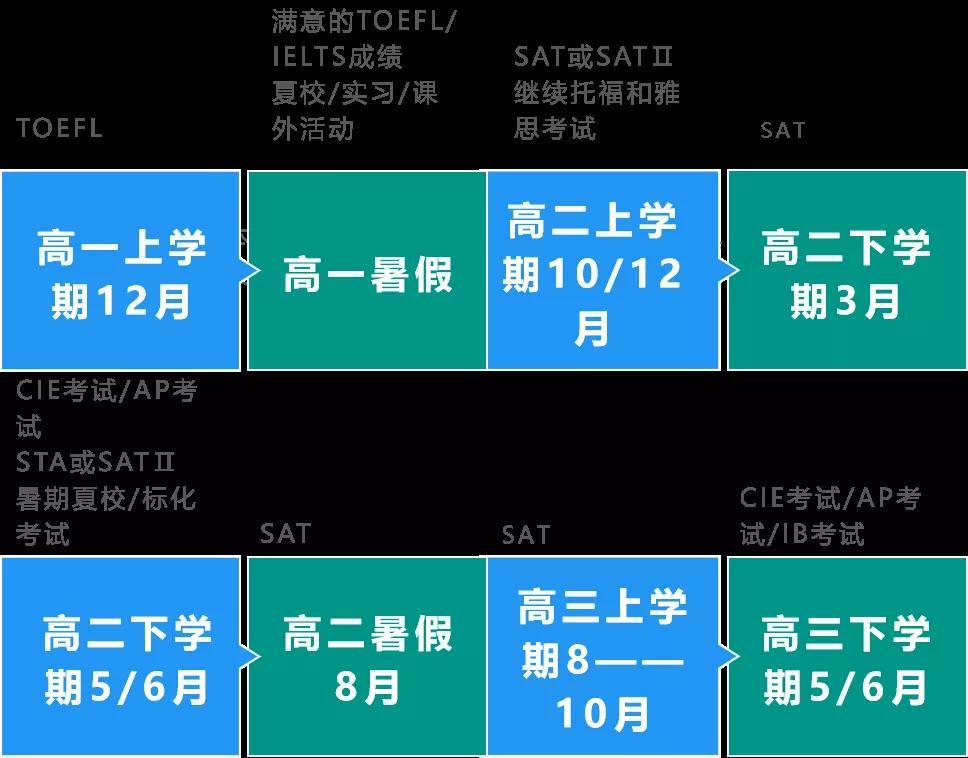 应该把雅思、托福等语言成绩考出来。SAT考试如果能在高二下学期考出理想成绩对申请也是非常有利的。