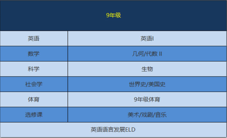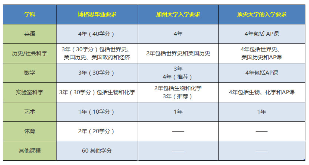 为了能从青岛博格思学校顺利毕业,学生应在9-12年级至少完成以下学科的课程。除非有特殊说明,每门课修一年;另外,学生还需修其他课程以满足220学分的毕业要求。