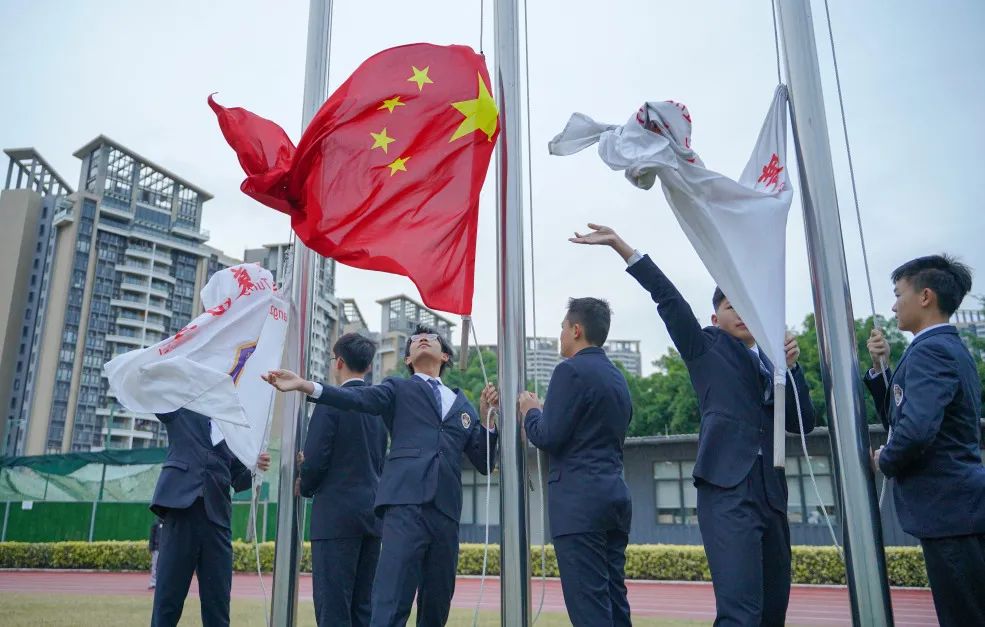 随着国旗校旗的扬扬升起,