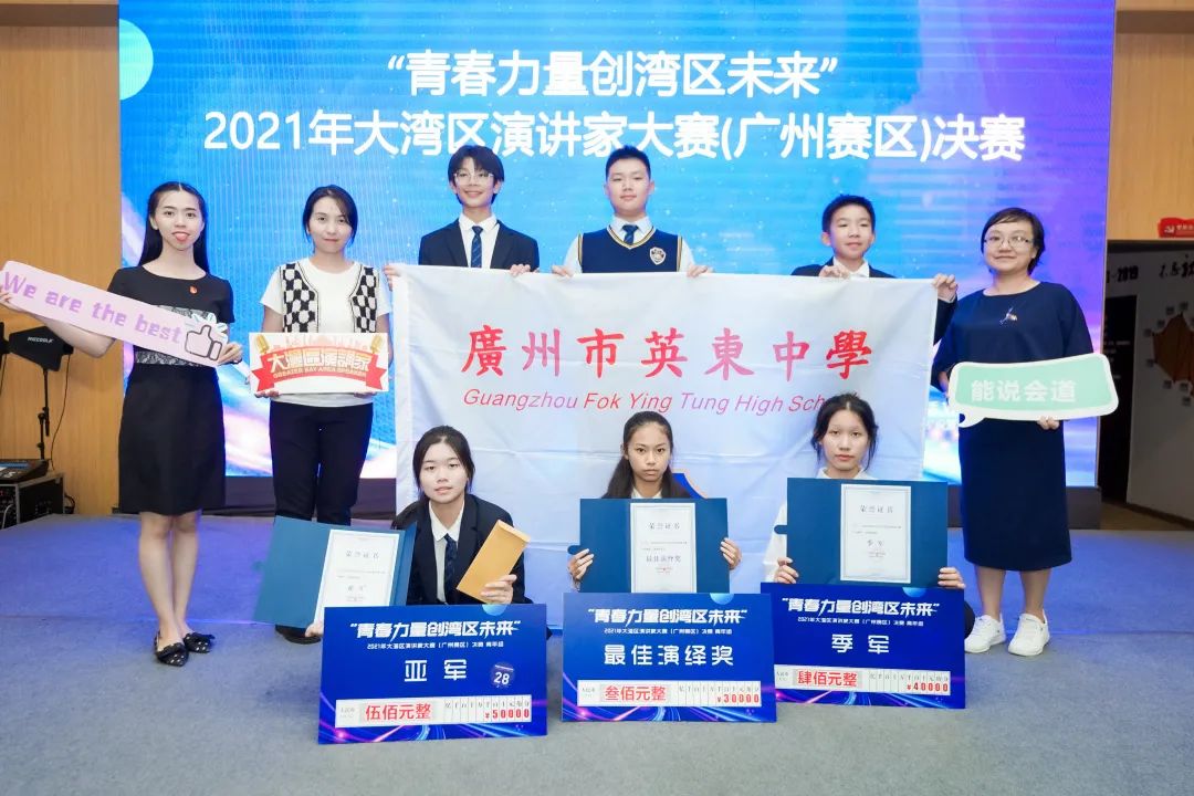 值得一提的是,邓蕾同学参加由广州市教育局、共青团广州市委员会、广州广播电视台共同举办的“百年奋斗路 湾区青年说”——粤港澳大湾区首届青少年演说大赛,被评为“十大杰出演说家”。她的演说直播及回放视频《在狱中的五星红旗》已在中国《学习强国》平台、广州广播电视台官方客户端播出,展现出英东学子朝气蓬勃的青春风采。还有很多为校争夺荣誉的同学,我在此向你们以及向你们背后作出贡献的指导老师们表示衷心的感谢!