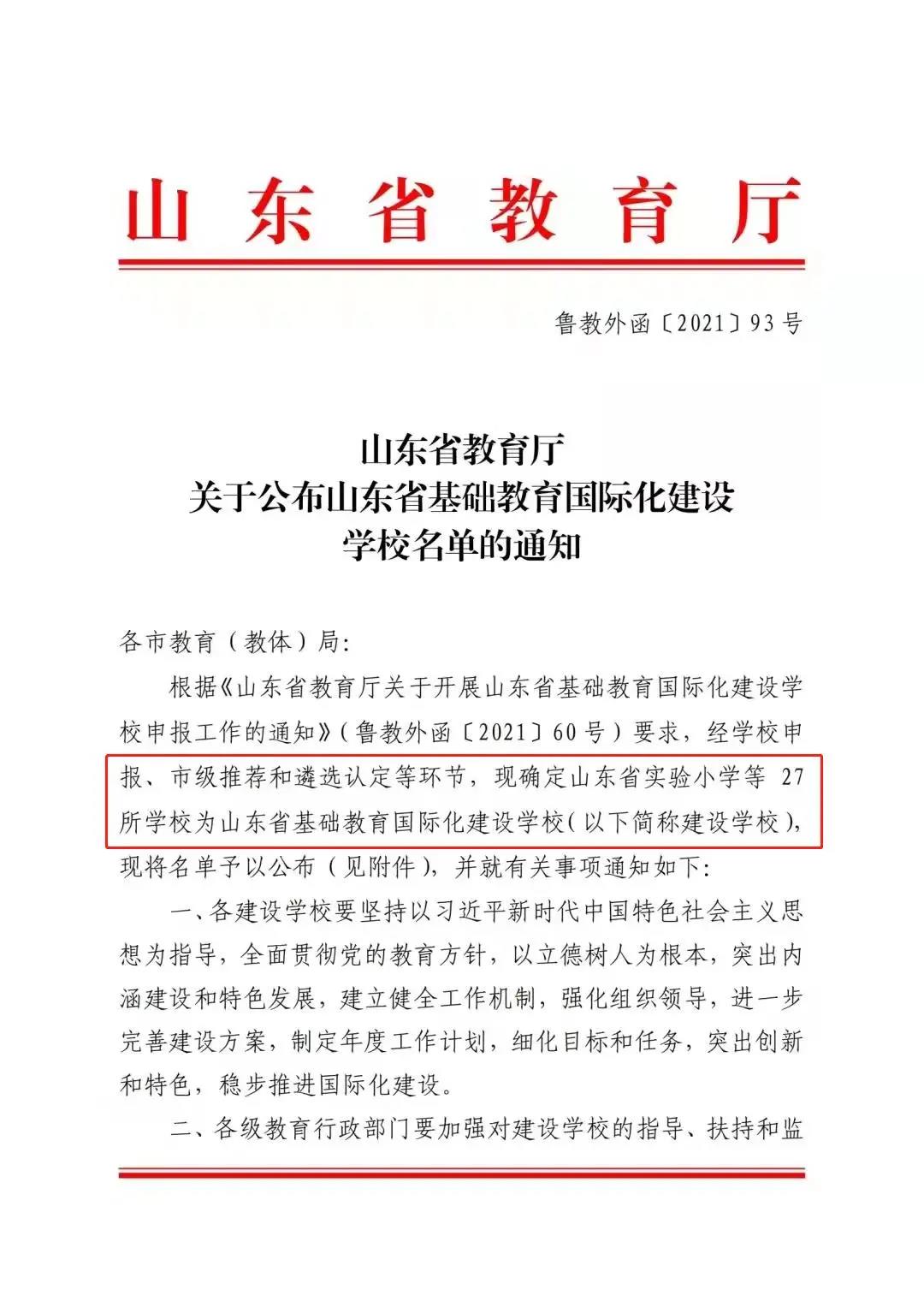 同年12月,山东发布《关于公布山东省基础教育国际化建设学校名单的通知》,确定山东省实验小学等27所基础教育国际化建设学校,并在文件中指出:各级教育行政部门要加强对建设学校的指导、扶持和监管。