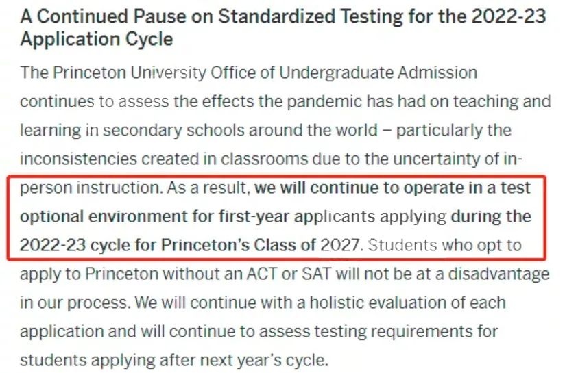 普林斯顿大学校本科招生办表示:考虑到疫情对世界各地中学教学的影响,在没有ACT/SAT成绩的情况下,申请普林斯顿的学生不会处于不利地位。