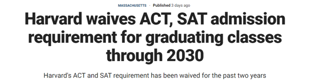 哈佛大学在早申放榜前夕就更新了招生政策,宣布:2027届-2030届申请者无需提交SAT/ACT成绩即可申请。