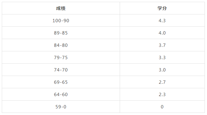 加拿大GPA4.3算法: 不同于4.0算法,加拿大GPA4.3算法是将百分制换算成0-4.3不同的学分,共分为8个不同的梯度,对应的换算方法如下:
