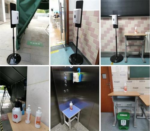 学校在诸多地方安放了洗手液,还有口罩专用垃圾桶