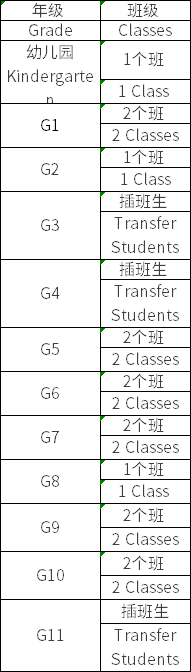 学校采用小班制教学模式,平均每班人数不超过25人。学校开通多条校车路线可覆盖广州市区,同时有深圳城际校车专线,方便学生出行。学校除幼儿园,各年级均可提供寄宿和周末留校服务。