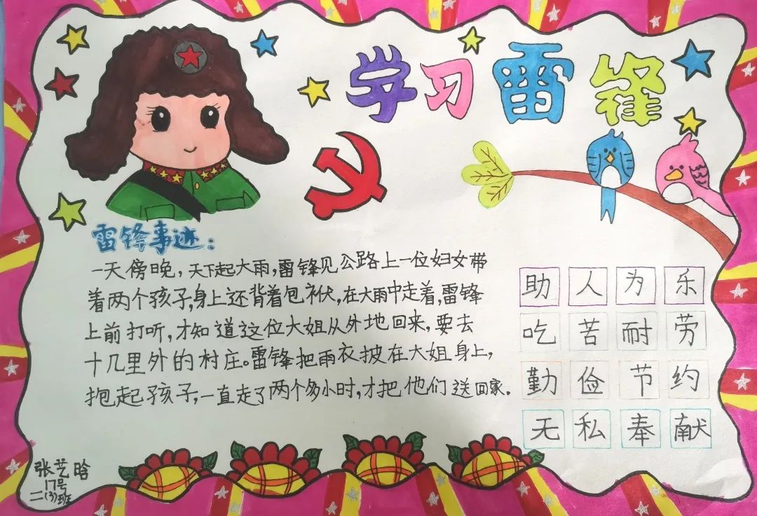 孩子们在老师的带领下,用灵巧的双手描绘了一幅幅精美的画面,这些手抄报不仅宣传了雷锋精神,也坚定了学生们做“小雷锋”的决心。